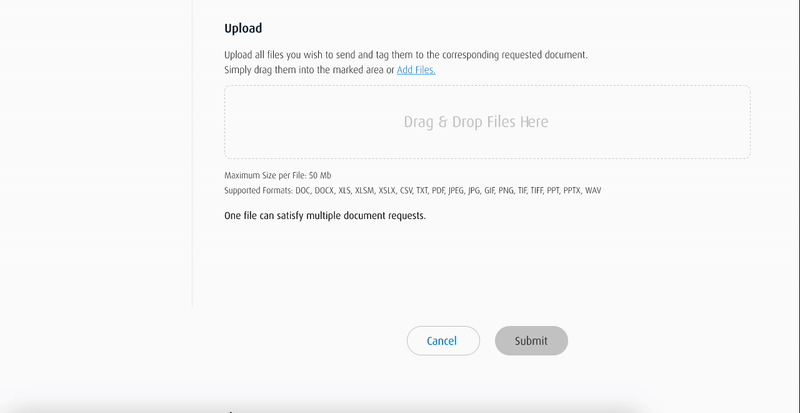 Clients can upload their documents by using the drag-and-drop box or the Add Files hyperlink.